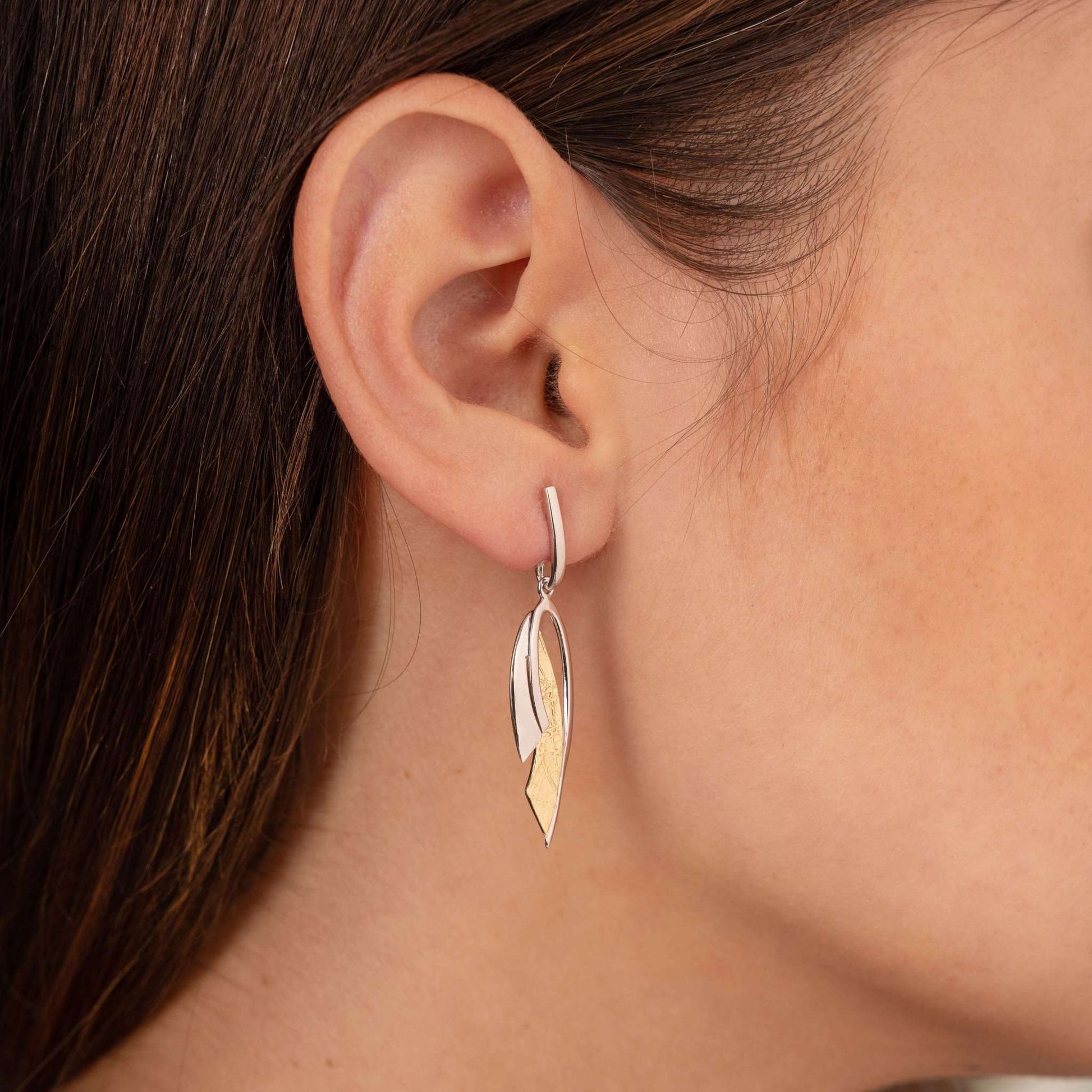 Ohrgehänge aus 925er Silber, teilvergoldet – Silberfarben/Goldfarben (ca. 47 × 11 mm)