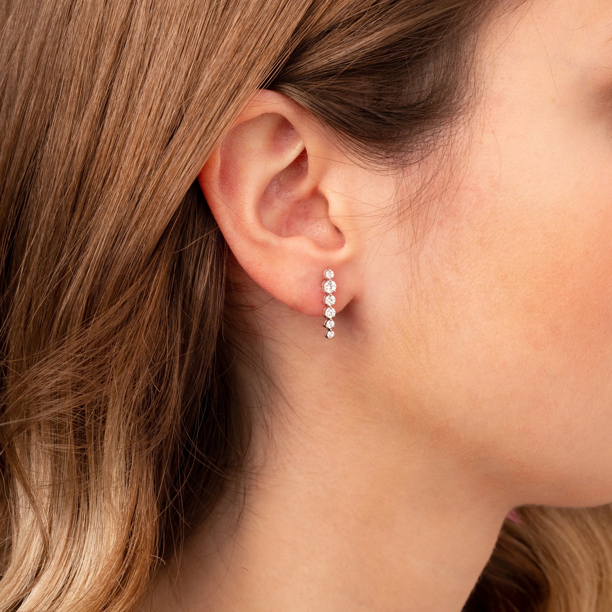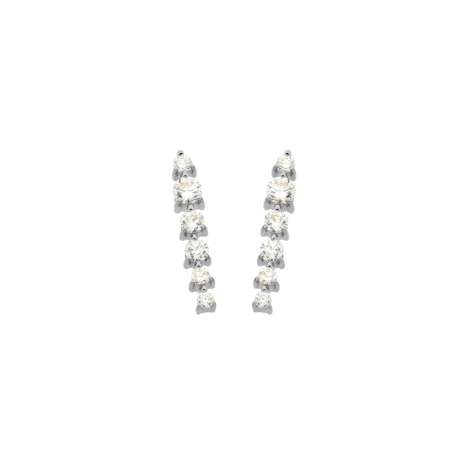 Die Ohrgehänge bestehen aus hochwertigem 925/- Silber, sind rhodiniert und mit funkelnden Zirkonia-Steinen versehen. Mit einer Größe von ca. 17 × 3 mm verleihen sie Ihrem Auftritt feinen Glanz – ideal für Damen, die elegante und dezente Schmuckstücke schätzen.