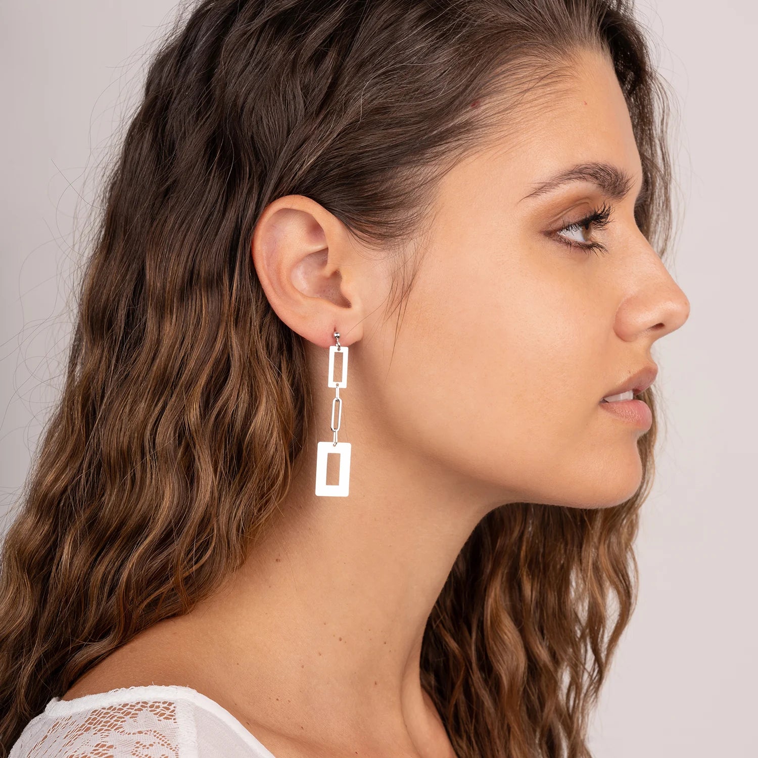 Diese eleganten Ohrstecker sind gefertigt aus hochwertigem 925/- Silber mit einer Rhodium-Veredelung und rechteckigen Designelementen. Mit den Maßen ca. 60 × 13 mm setzen sie einen modernen Akzent – ideal für Damen, die Stil und Vielseitigkeit schätzen.